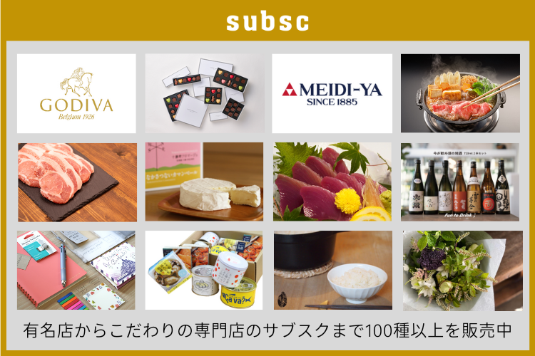 といった有名店のサブスクから、こだわりの専門店、卸会社、メーカーなどによる100種類以上のサブスクを販売しています。