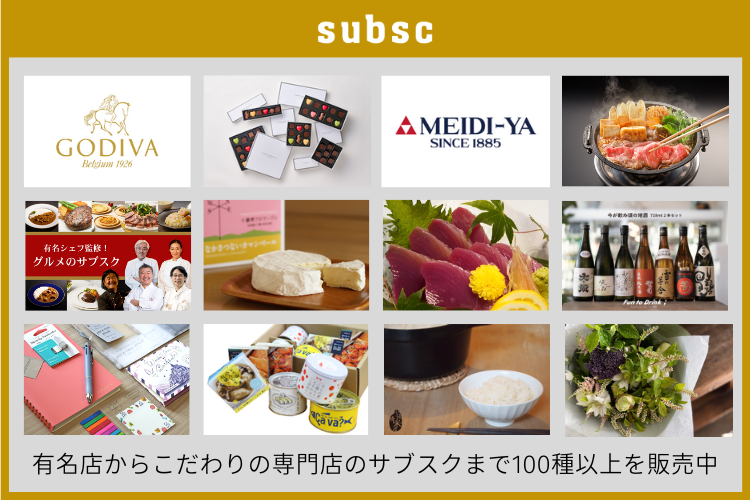 といった有名店のサブスクから、こだわりの専門店、卸会社、メーカーなどによる100種類以上のサブスクを販売しています。