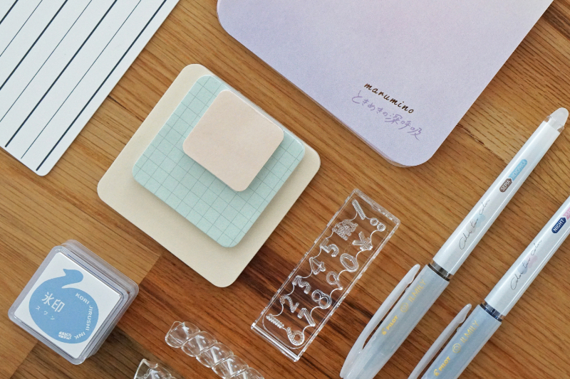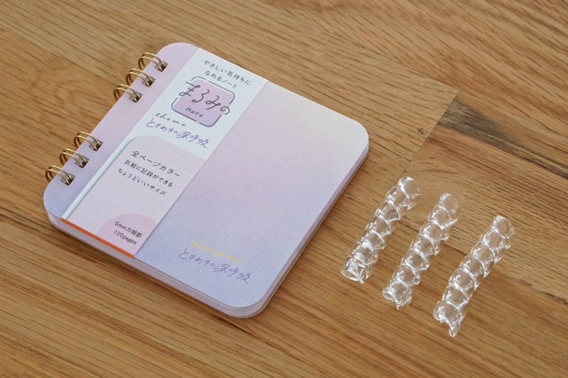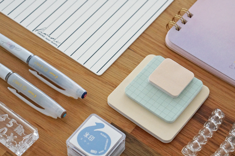 まるみが特徴の正方形サイズのノート。持ち運びしやすいサイズ感で使いやすい5mm 方眼罫です。「ときめきの深呼吸」っていう名前もかわいい♥