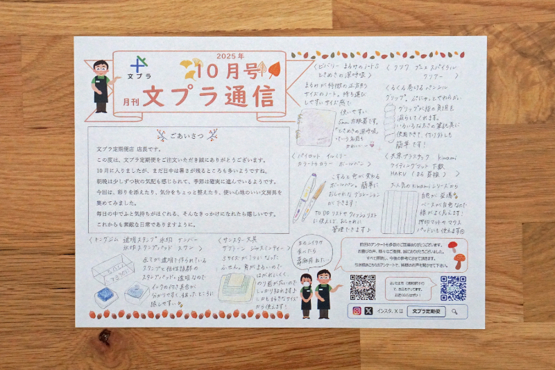 届いた文房具の解説が書かれた「月刊 文プラ通信」も同封されています。