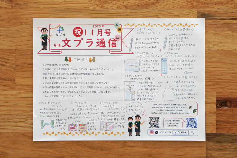 届いた文房具の解説が書かれた「月刊 文プラ通信」も同封されています。