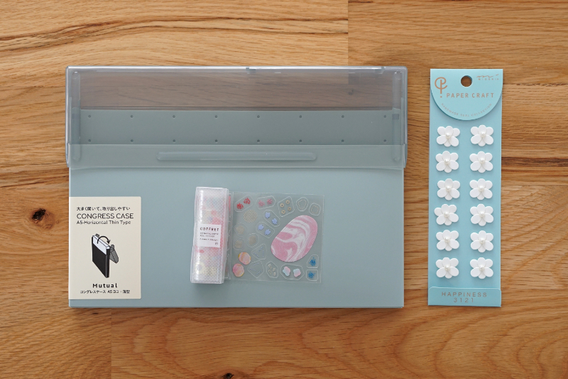 A5サイズのクリアホルダーが入るケース。ポストカードやステッカーなどの収納に!