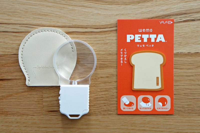 電球みたいなかたちのLEDライト付ルーペ。暗い場所での使用や日常の細かな文字に!!薄くて持ち運びやすいのでライトをつければ、カバンの中での探し物にも便利!