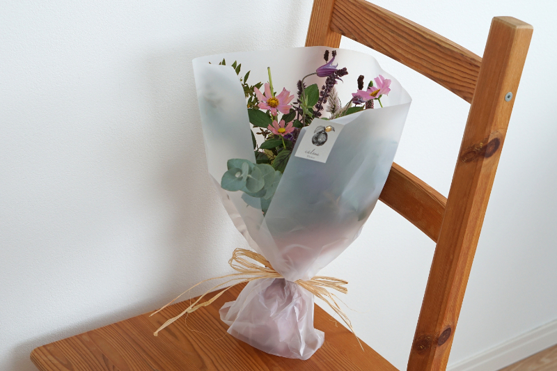 四季折々の旬のお花や枝物・グリーンをブーケにして “毎月1回・定額” で届けてくれます。