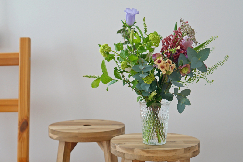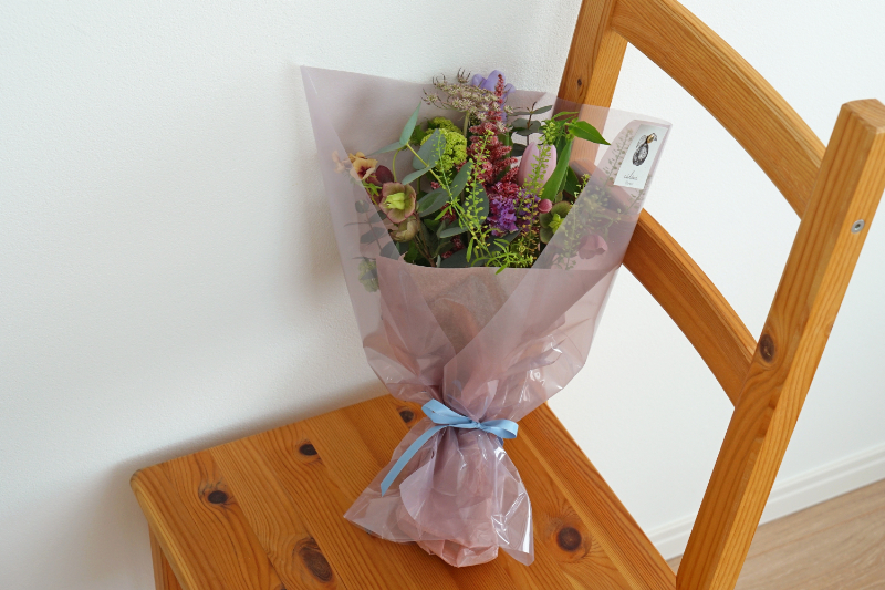 四季折々の旬のお花や枝物・グリーンをブーケにして “毎月1回・定額” で届けてくれます。