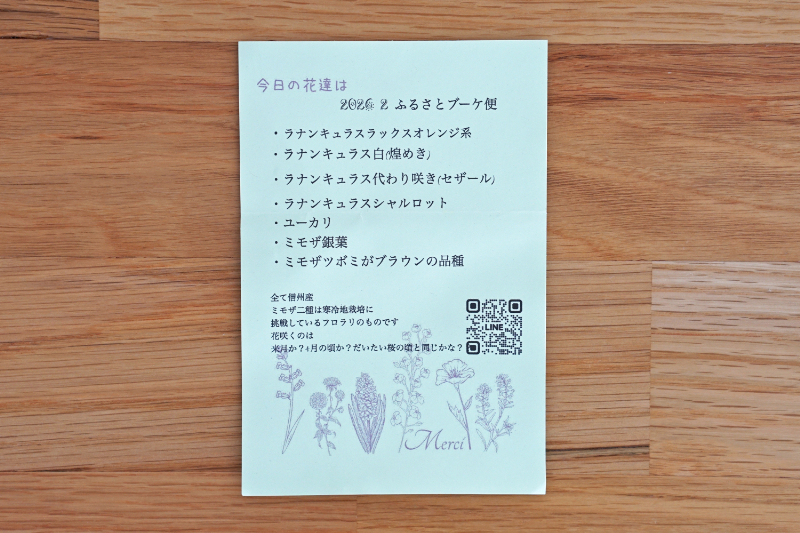 街角花屋フロラリさんでは、花の産地にある花屋だからこそできるサービスとして『長野県産のお花』を中心とした花束 “ふるさとブーケ” を毎月お届けします。