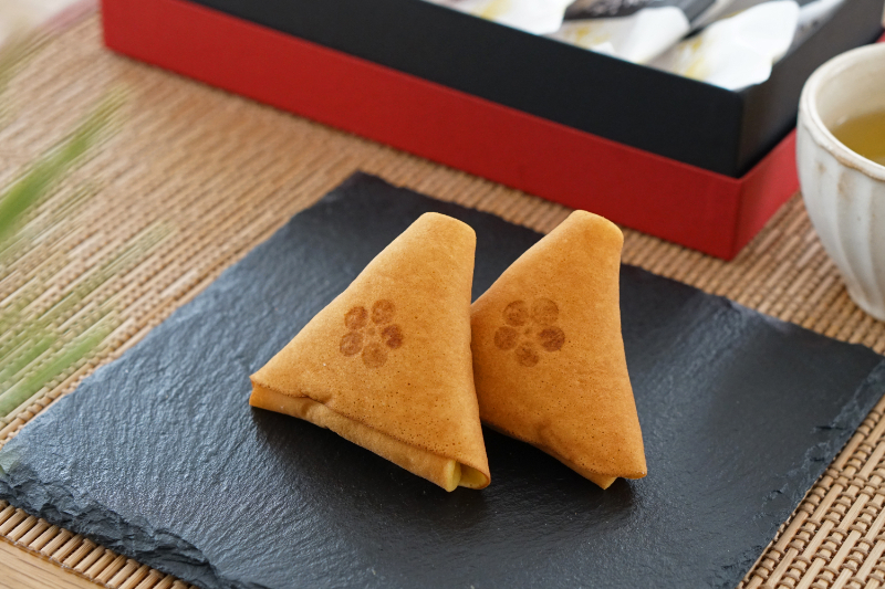 しっとりと柔らかな焼皮にたっぷりと包まれた創作餡のやさしい甘さが上品な和菓子です。餡は2種類。黒糖を練り込んだコク深い黒糖餡と季節ごとの餡をお届けします(2〜4月は伊予柑餡)。