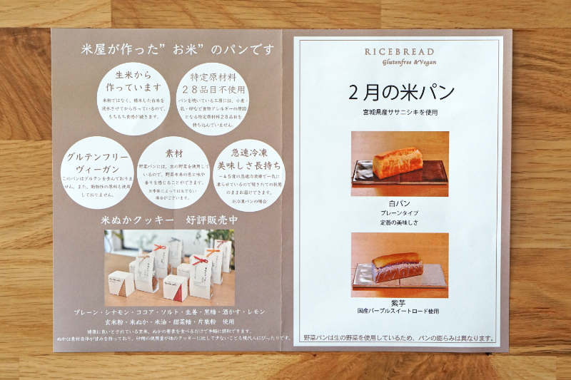 小張精米店で売られている「美味しいお米」を使って作ったお米パンを、毎月2種類届けてくれる「お米パンのサブスクリプションボックス (定期便) 」です。