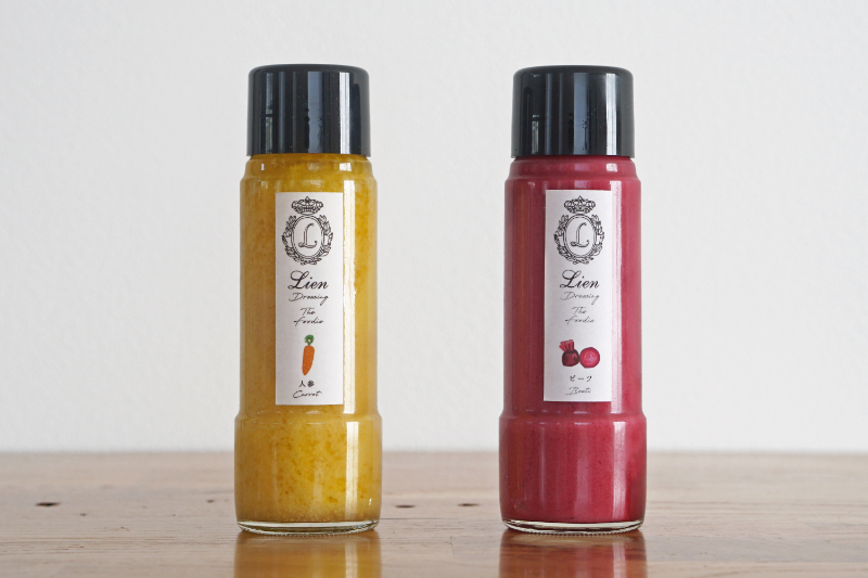 使用する野菜は生産者との直接取引にこだわり、新鮮な素材を厳選し、独自の製法で作られたのが『リアン生ドレッシング』です。