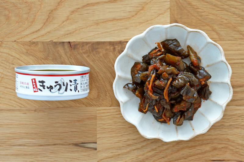 ほどよい辛さと甘みが特徴的なキムチ味のきゅうりのお漬物。(mr.kanso 缶詰カルテより)
