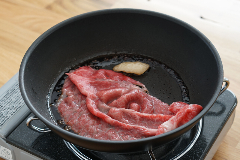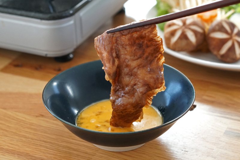 さらに、黒毛和牛の旨味が出た割下に野菜などの具材を入れ、お肉と一緒に食べるのが美味しい食べ方の秘訣とのこと。