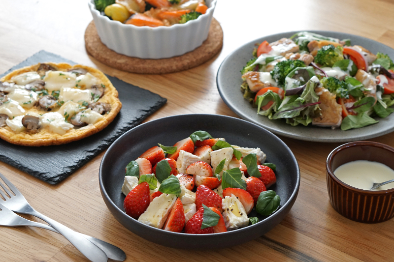 こちらの「十勝野ミルクカマンベール」は、旬の苺と合わせてカプレーゼにしていただきました。ミルキーなカマンベールと甘酸っぱい苺がよく合います!