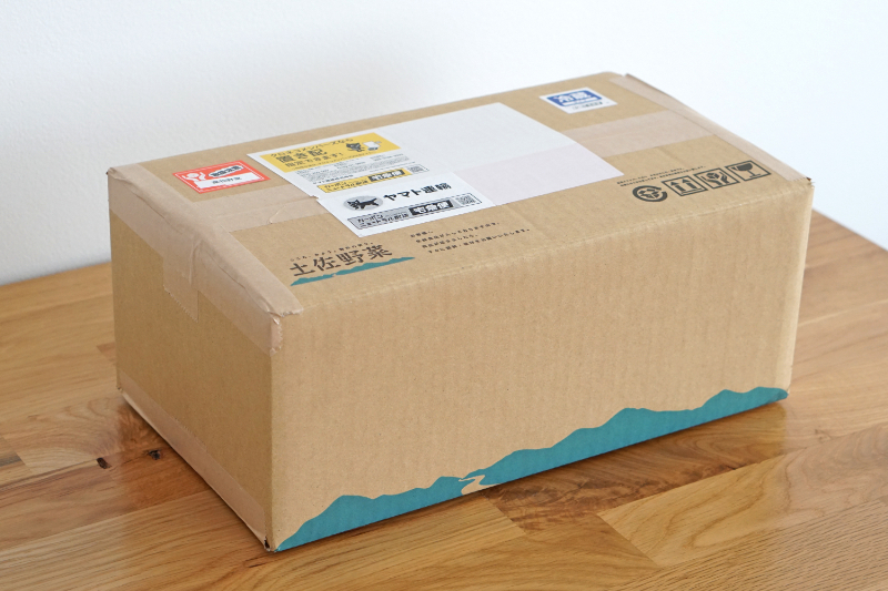 「土佐野菜ーこころ、かよう。野菜の便り。」さんから毎月1回届く野菜の定期便は、専用ボックスで届きます(冷蔵便)。