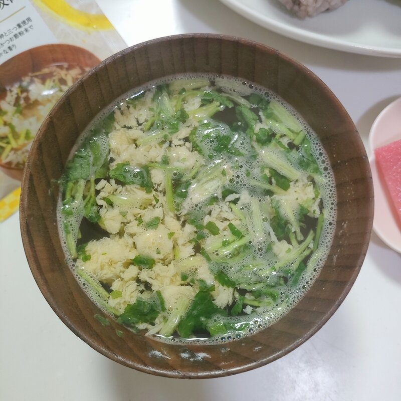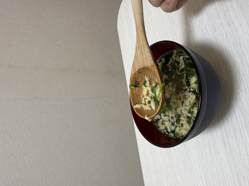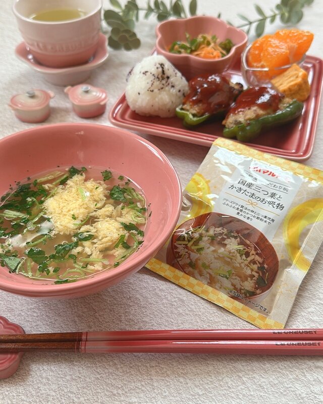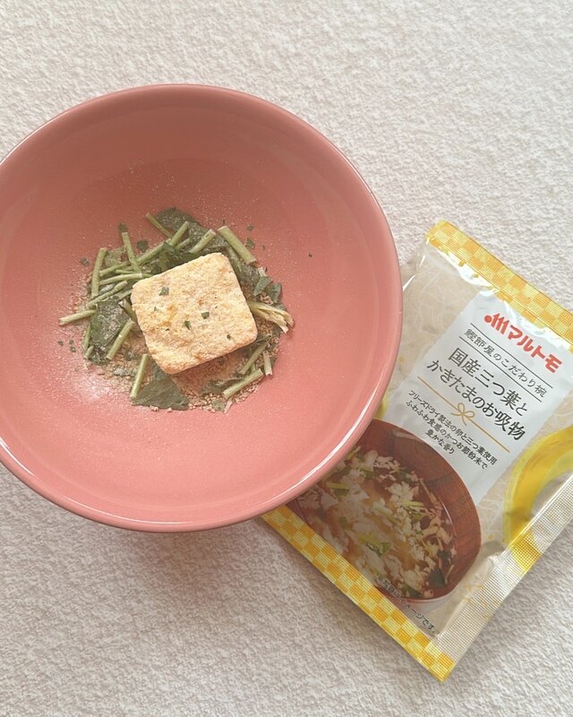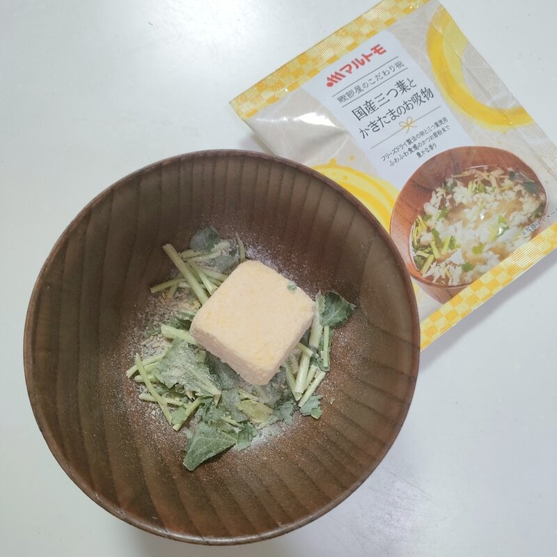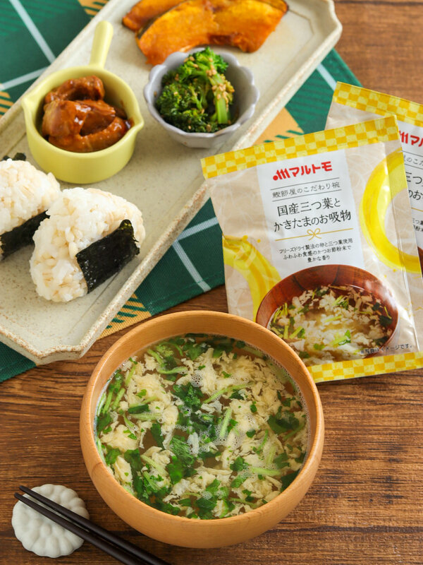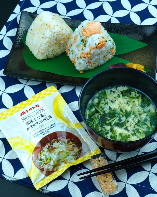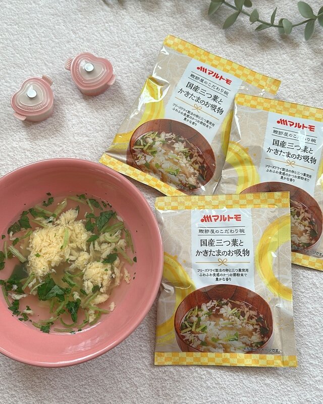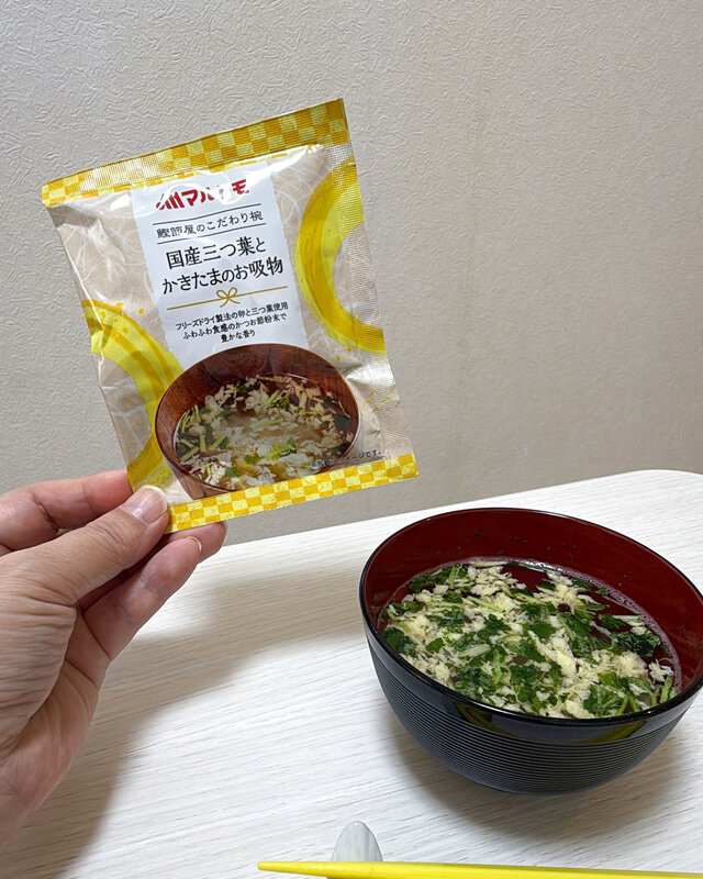 ひと口飲むと、澄んだだしの中にしっかりとした旨みが感じられ、さすが老舗のマルトモと納得。国産三つ葉の爽やかな香りがふわっと広がり、かきたまはフリーズドライとは思えないほどふんわりやさしい口当たりで、毎日飲んでも飽きない、ほっと落ち着く味わいです。