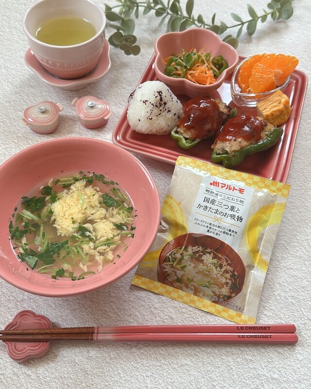 出汁には「マルトモ」のかつお粉末を使用。鰹旨味たっぷりなだしの感じが味わえる本格的なお吸い物です✨️