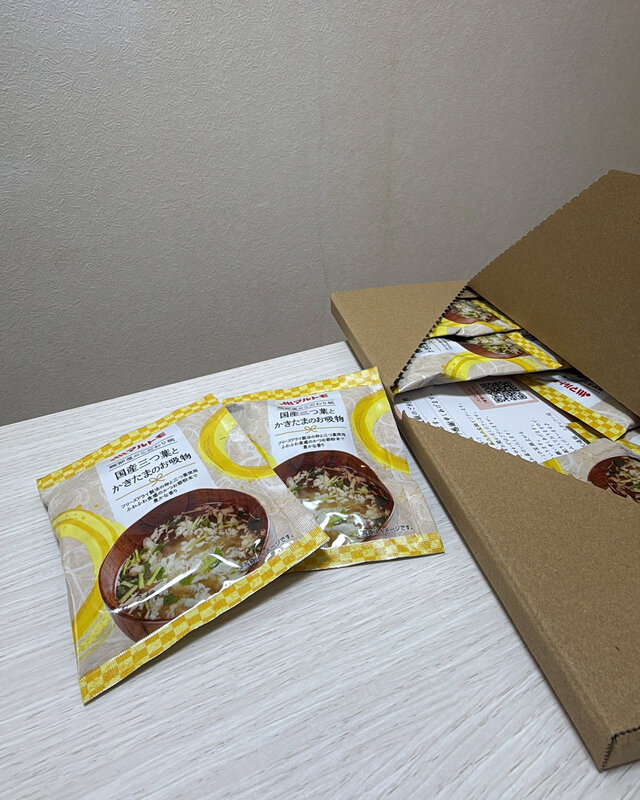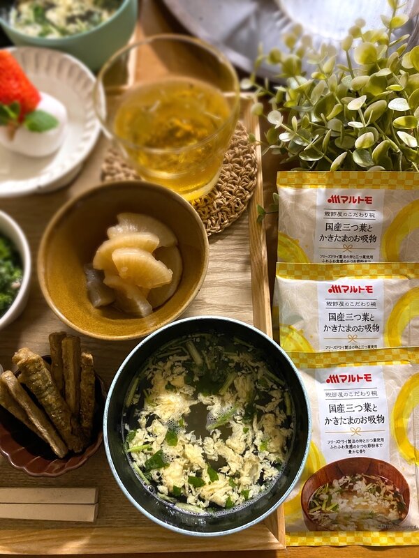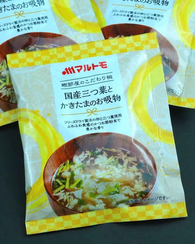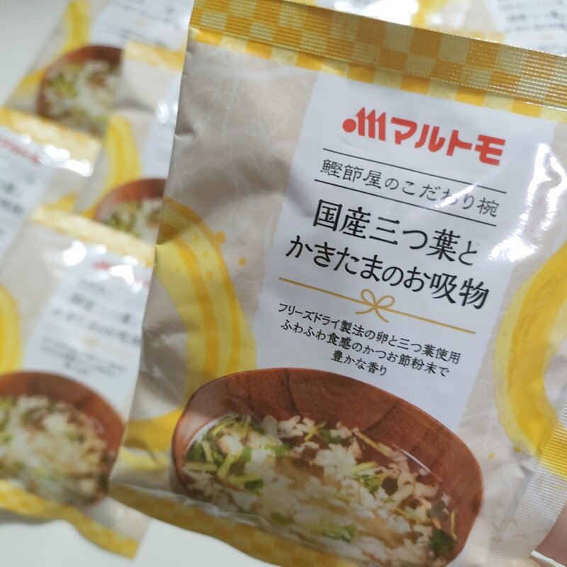 今日は, 「マルトモ」様 @prebushi_marutomo から【鰹節屋のこだわり椀 国産三つ葉とかきたまのお吸物】が届きました🙌