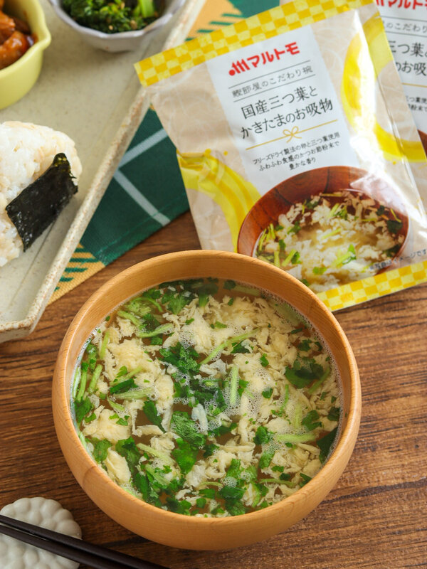 だしの香りにほっとする マルトモの国産三つ葉とかきたまのお吸物
