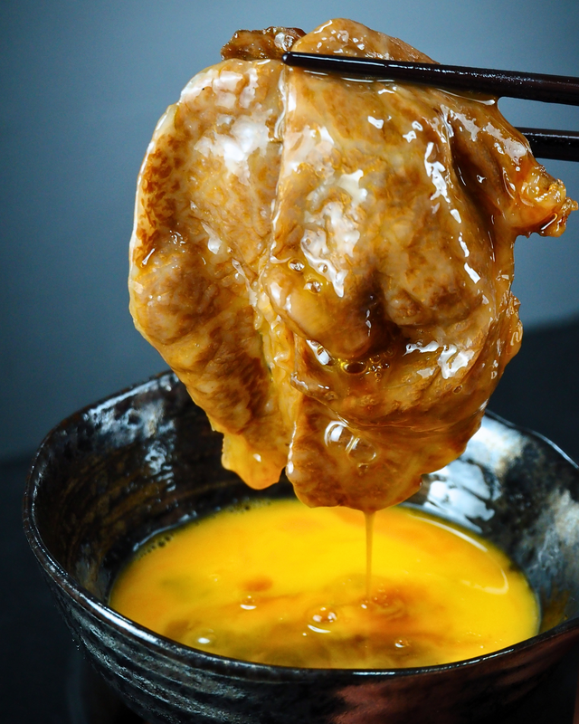 そしてお肉だけを先に卵をつけて味わいます。まさに至福のとき✨