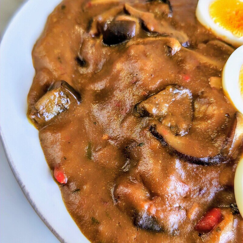 玉ねぎ、ズッキーニ、なすやトマト、赤ピーマン、りんごなどあらゆる野菜たちの旨味が感じられるカレーです。しいたけも入っていました!