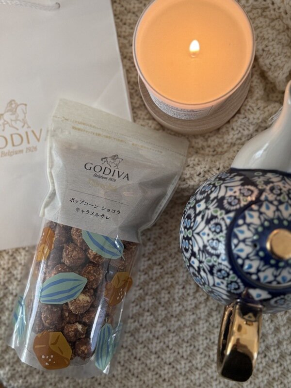 そしてポップコーンのショコラキャラメルサレ🌟リッチなショコラに大好きなキャラメル。GODIVAならではのリッチな味わい。映画『国宝』を観ていた時に予告で気になった『教場』を観ながら、お家シアターのお供に😌🩷