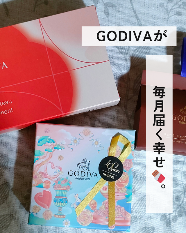 GODIVAって特別な日に食べるイメージあるけど、こうやって毎月届くと開ける瞬間のワクワクがすごい🥹
